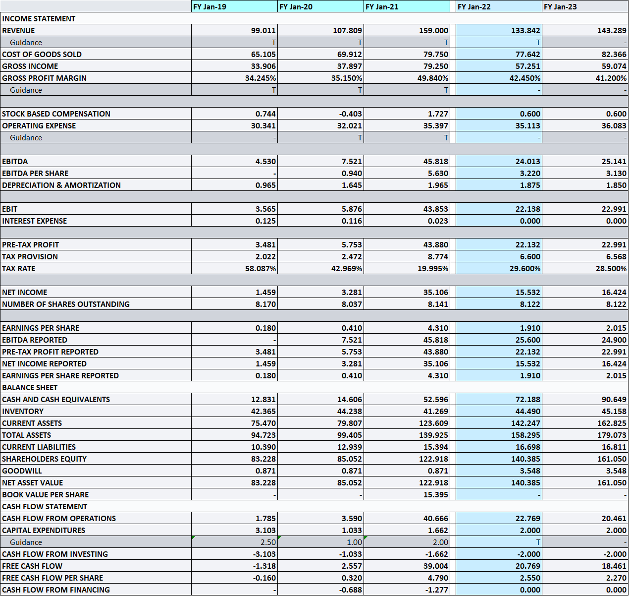 For quant nerds, as the share count decreases ROI, ROE etc rise. Over the past few years, Lakeland has, in their spare time diversified raw material sources to improve the gross margin profile, regardless of covid or no covid. The SKU count has dropped, creating more operating leverage.