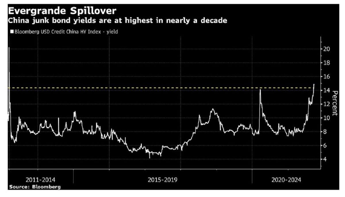 While the Chinese Communist Party (CCP) keeps a tight lid on any information leaking about Evergrande debt, one thing is sure: There are 60 million empty apartments in China held as “savings accounts,” as the Chinese like to store money in real estate and watch it appreciate. Anything that is done to reduce the flow of credit towards the real estate sector – like Chinese high yield bonds trading at levels higher than during the COVID crash in March 2020 – can cause the Chinese real estate market to roll over.
